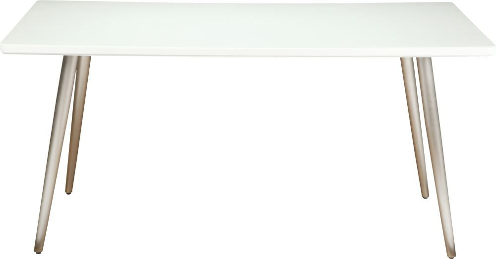 Modern and simple white dining table-Elegant and simplistic. Made of painted glass, MDF, and brushed stainless steel.