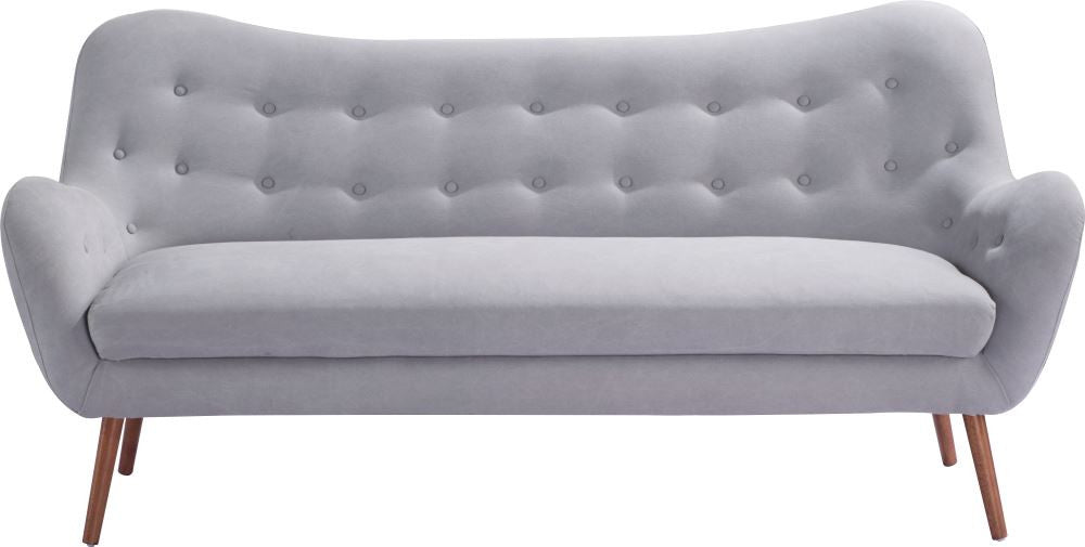 The Cecil club chair and sofa are elegant, simplistic, and incredibly cozy. Tufted back with buttons. Muted grey tone.