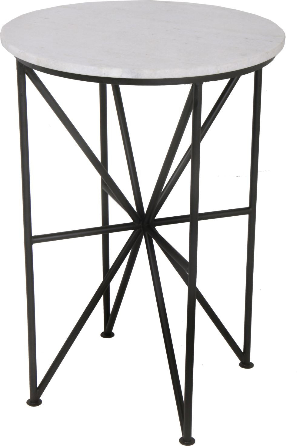 This accent table is a perfect mix of iron and marble-bold iron table legs and a classic white marble top. Perfect for displaying pictures, plants, or other décor.