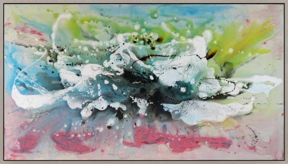 Acrylic pastel colours burst out of this pretty painting. Comes with frame.