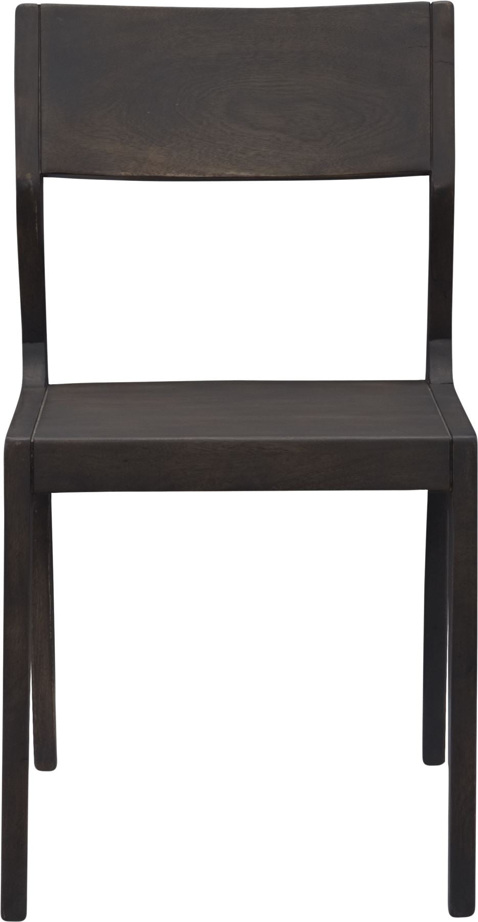 This sturdy construction chair fits in perfectly around any dining table due to it's armless design. Made of solid acacia wood. Comes in light or dark brown.