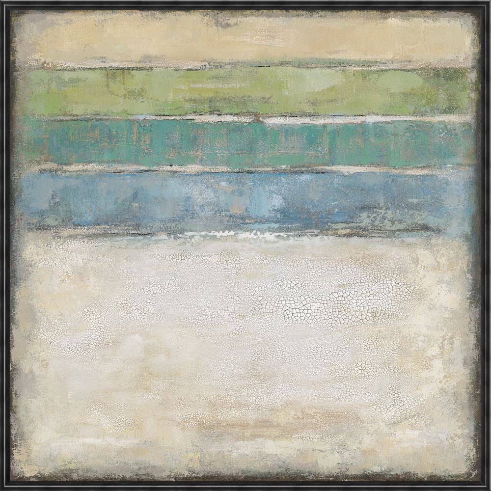 This aquamarine wall décor includes all the colours of the ocean. Muted soft blues and greens. Crackled pattern. Oil Paint. Comes with frame.