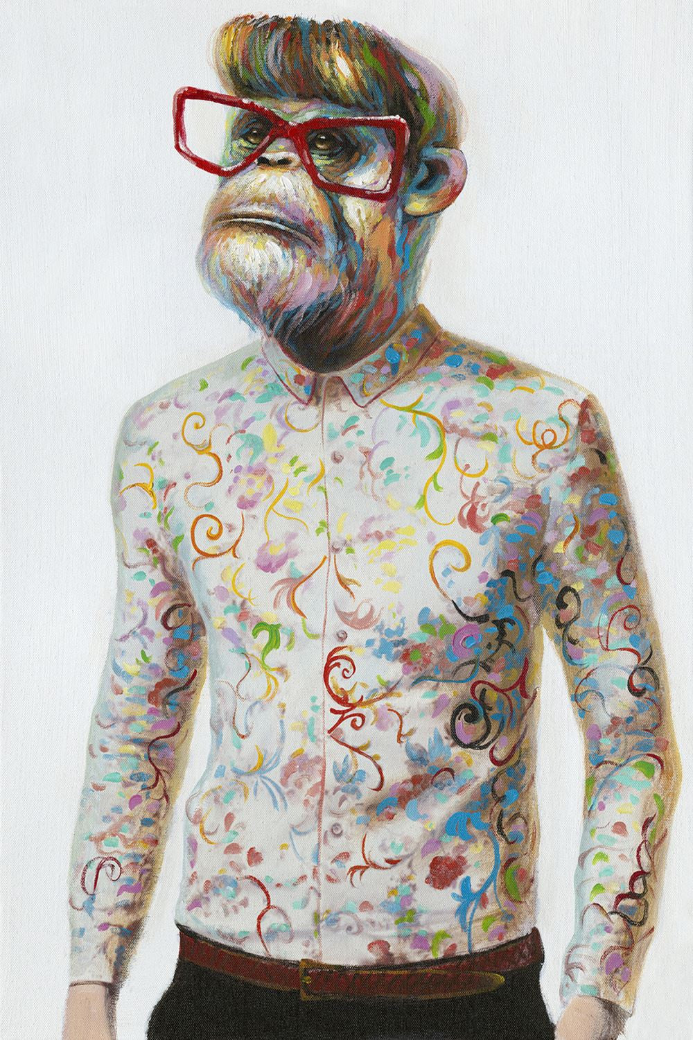 Our friend Mr. Muggs is looking stylish in his fancy pants outfit and chic red glasses. He is the essence of style!