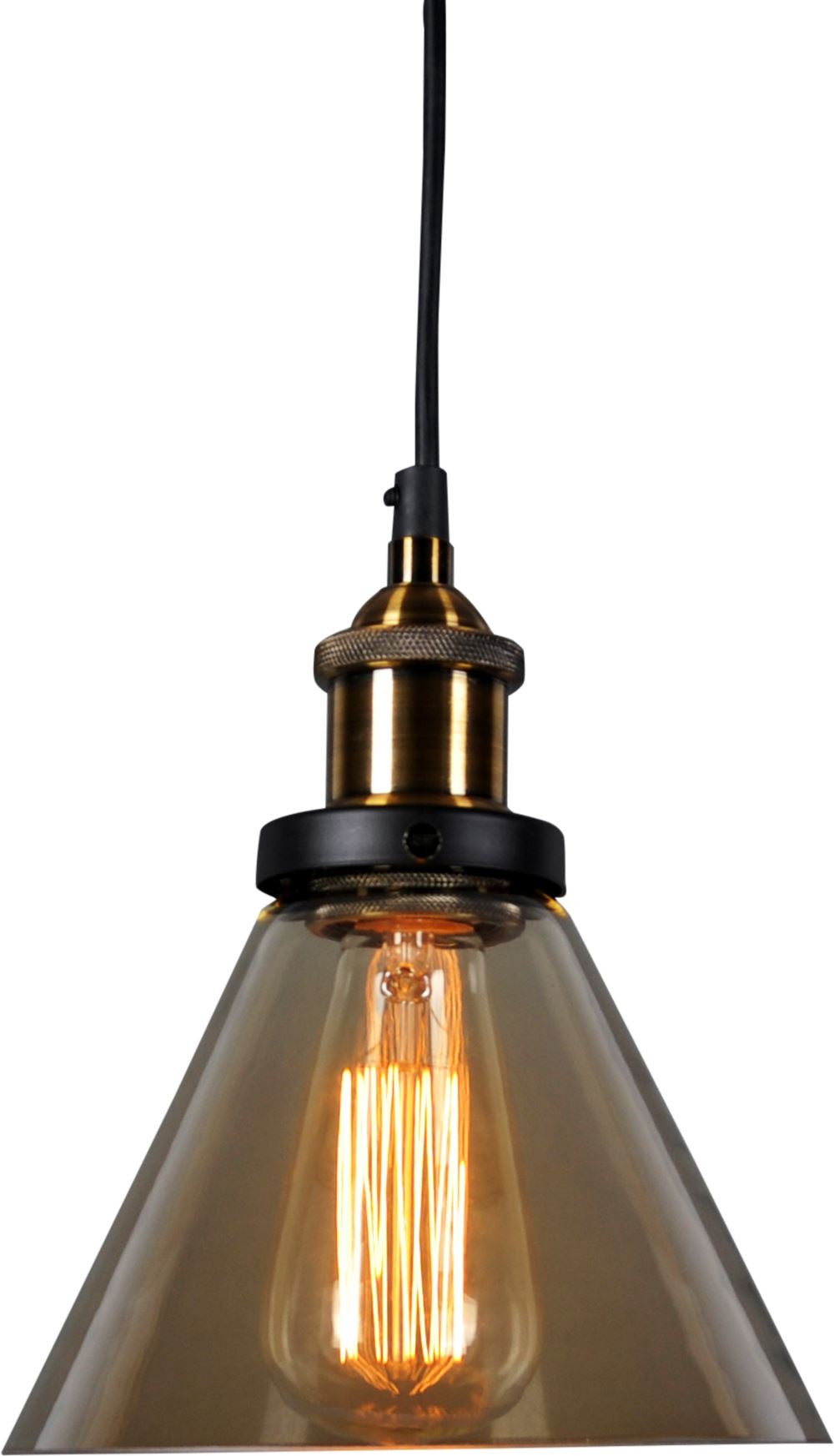The amber coloured glass gives this pendant lamp a warm inviting feel. This unique design is made of amber glass, iron, and aluminum.