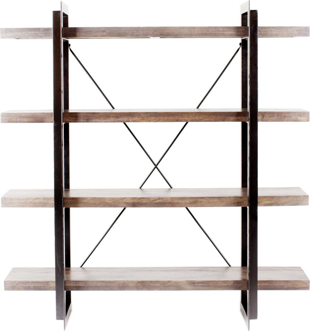 Rustic style with a contemporary touch 4 level shelf. Solid Wood and metal construction. The dimensions are 60"w x 15"d x 64"h.