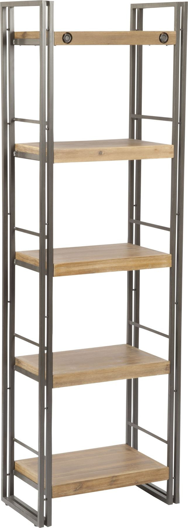 Solid acacia wood & metal. Contemporary design with industrial accent. 5 shelves for storage.