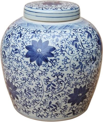 B&W Twisted Vine Floral Lidded Ming Jar Large