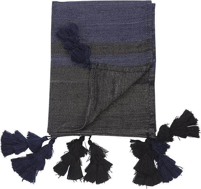 The addition of lurex to cotton and acro wool fibers gives a lustrous finish to these beautifully textured throws.