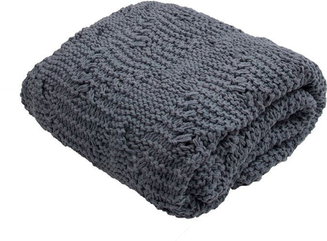 Style never felt so good. The cable knit patter is woven with ultra soft cotton for a quality comfort. The chunky hand knit resembles an oversized sweater, making it a cold-weather staple for warmth and style. Shown in slate.