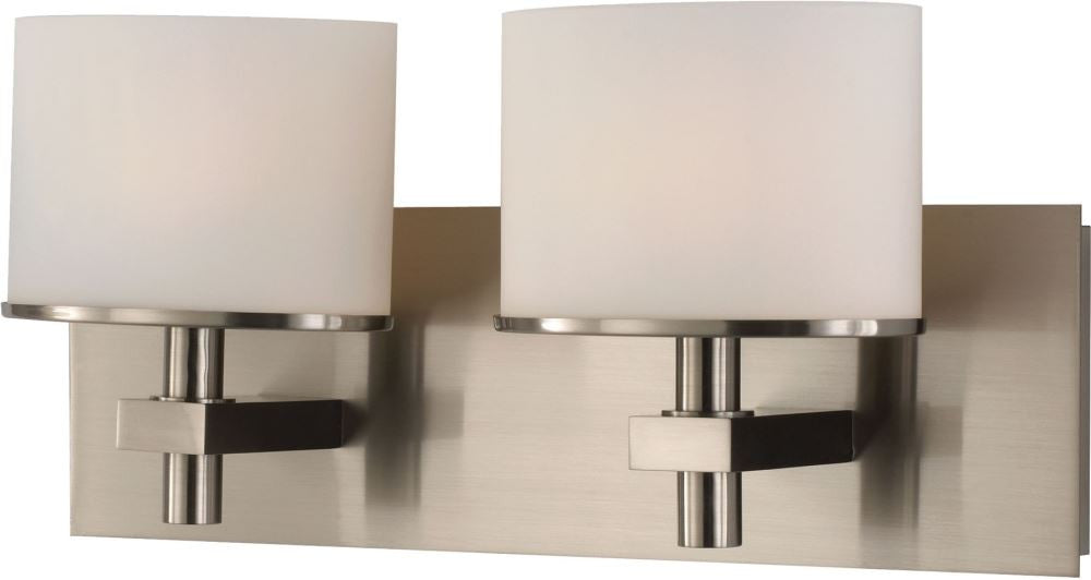 Ombra 2 Light Vanity In Satin Nickel and White Opal Glass