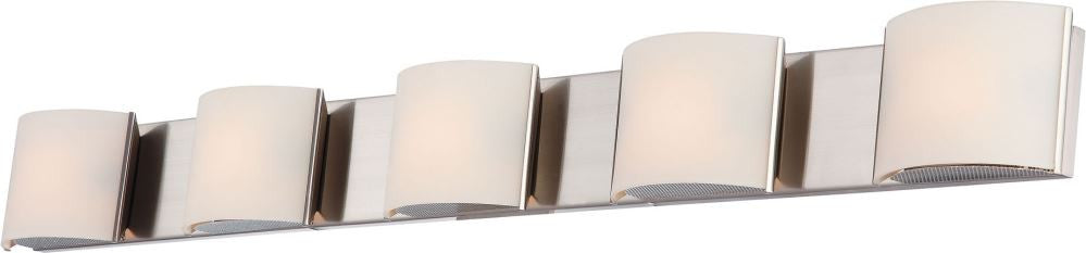 Pandora 5 Light Vanity In Polished Matte Nickel and White Opal Glass