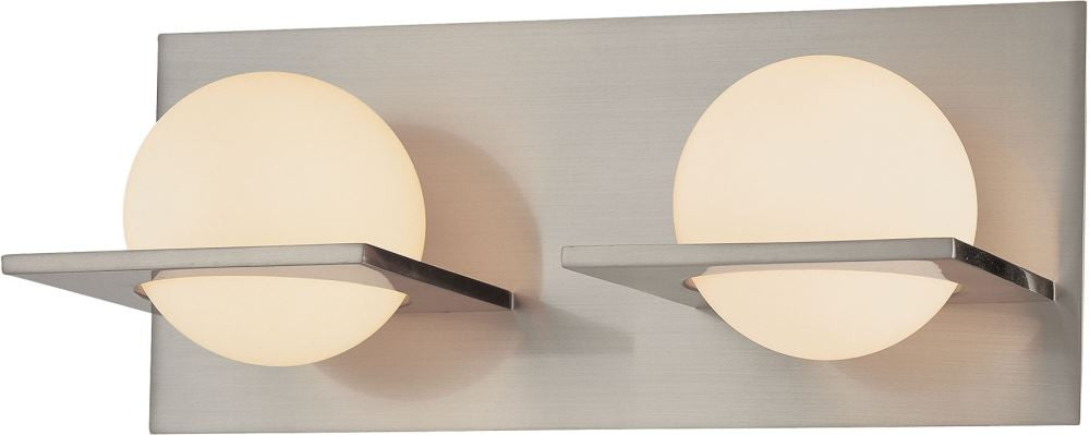 Orbit 2 Light Vanity In Matte Satin Nickel and White Opal Glass