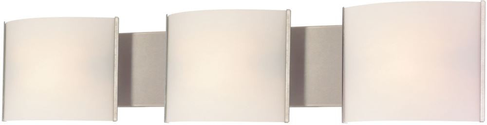 Pannelli Led 3 Light Vanity In Satin Nickel and Hand Moulded Opal White Glass