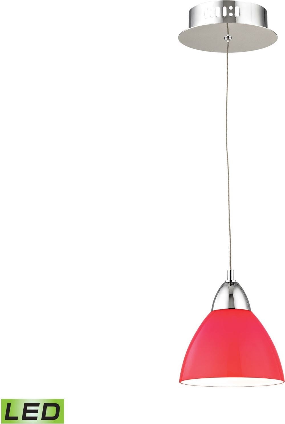 Piatto 1 Light Led Pendant In Chrome With Red Glass