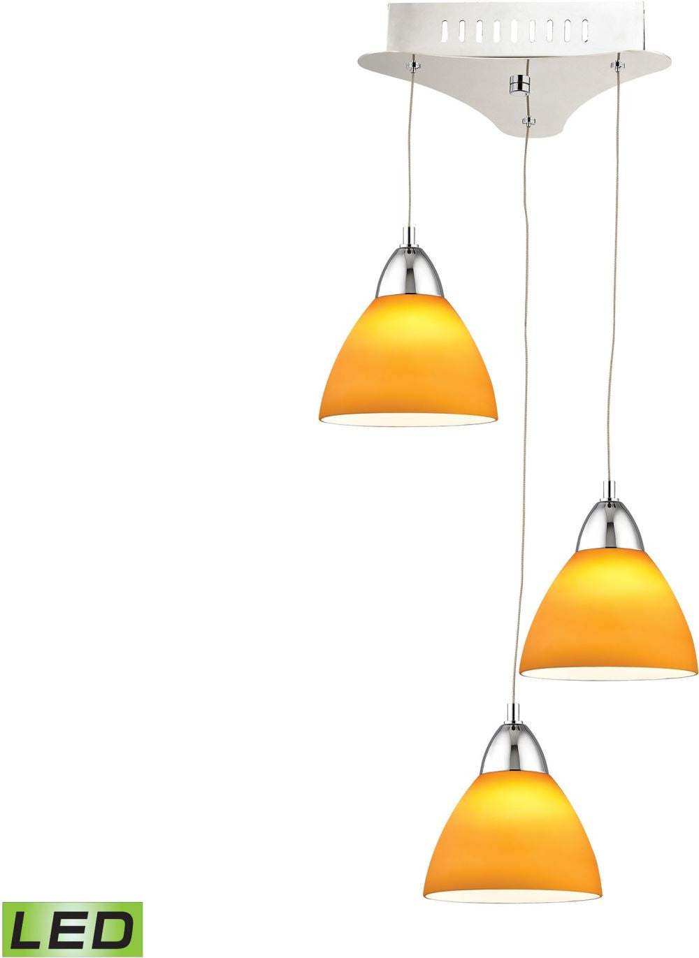 Piatto 3 Light Led Pendant In Chrome With Yellow Glass