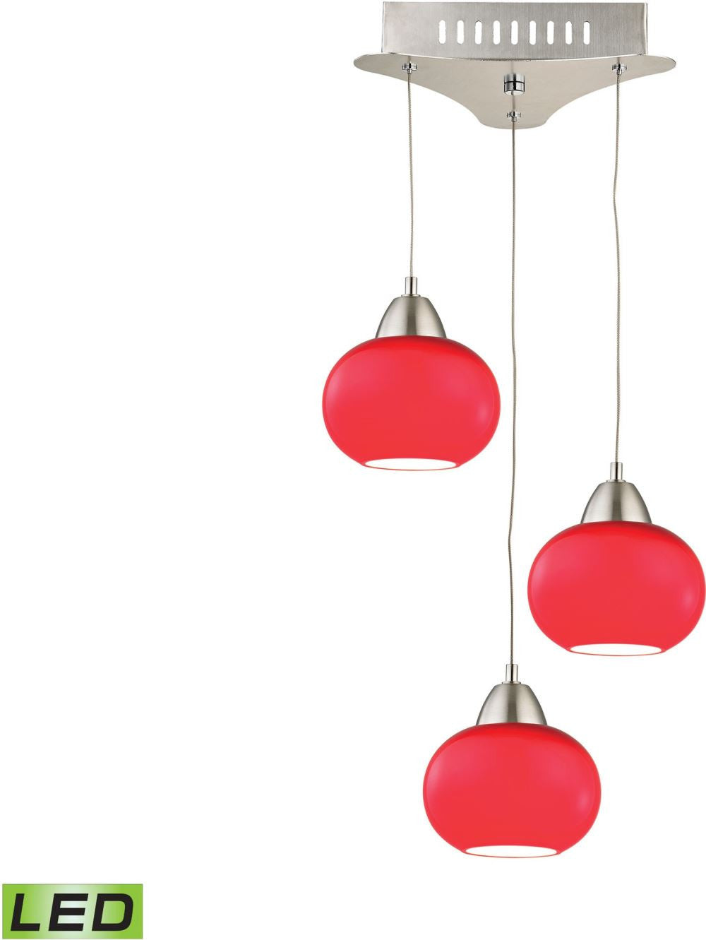 InsideAvenue Website | Ciotola 3 Light Led Pendant In Satin Nickel With Red Glass |