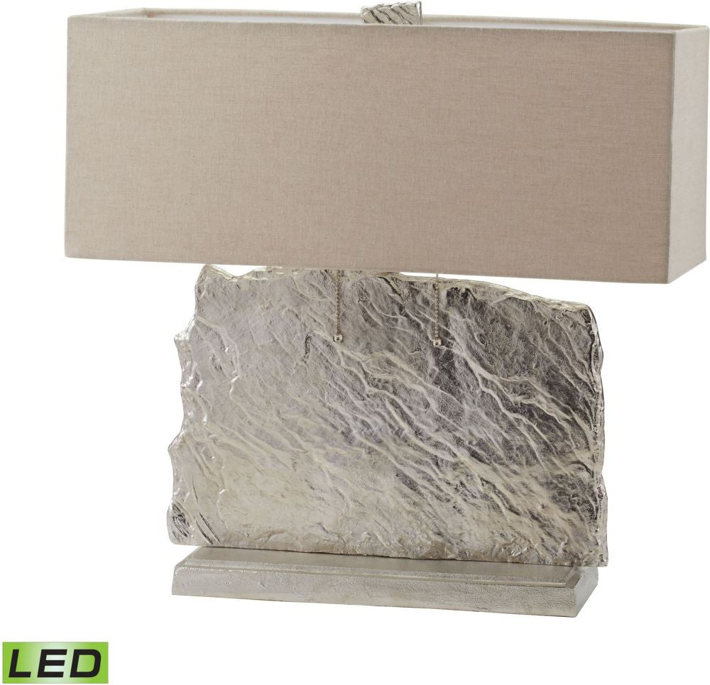 Slate Slab Led Table Lamp In Nickel With Natural Linen Shade
