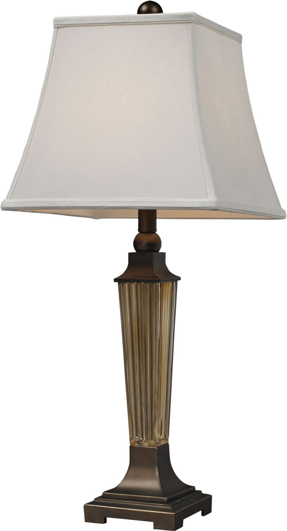 Amber Smoked Glass Table Lamp With Bronze Accents