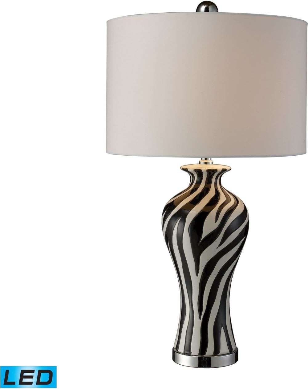 Carlton Led Table Lamp In Zebra Print With Pure White Faux Silk Shade