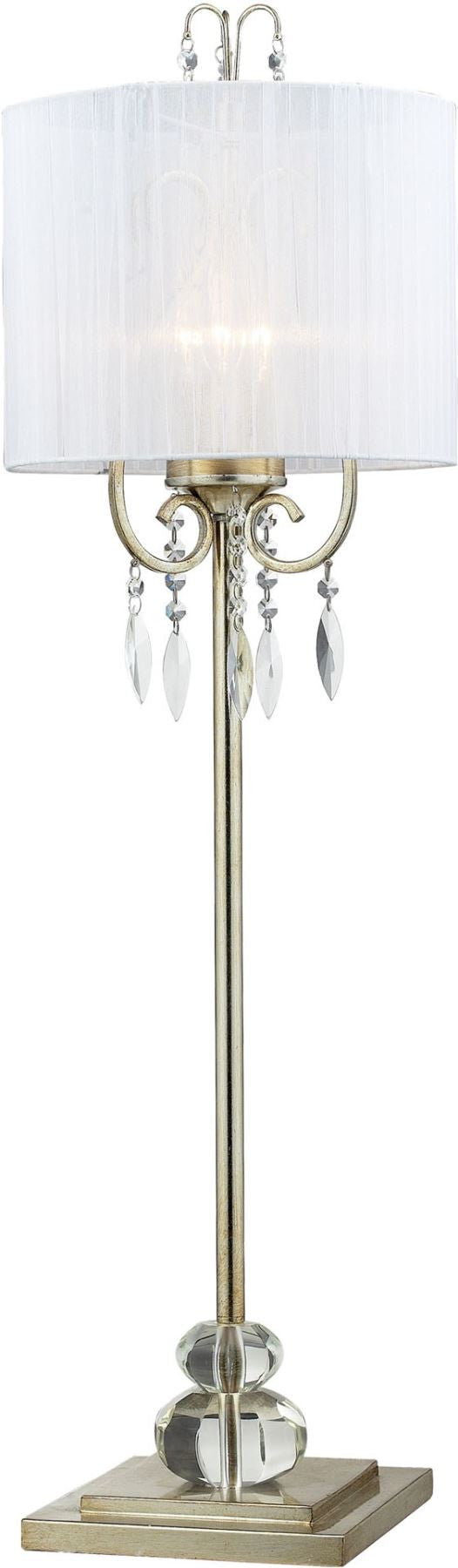 Albion Tall Buffet Lamp In Siver Leaf With Pure White Ribbon Wrapped Shade