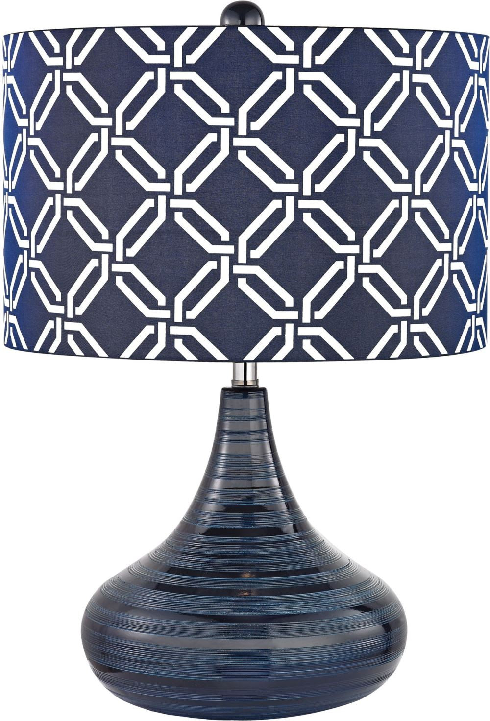 Peebles Ceramic Table Lamp In Navy Blue With Printed Shade