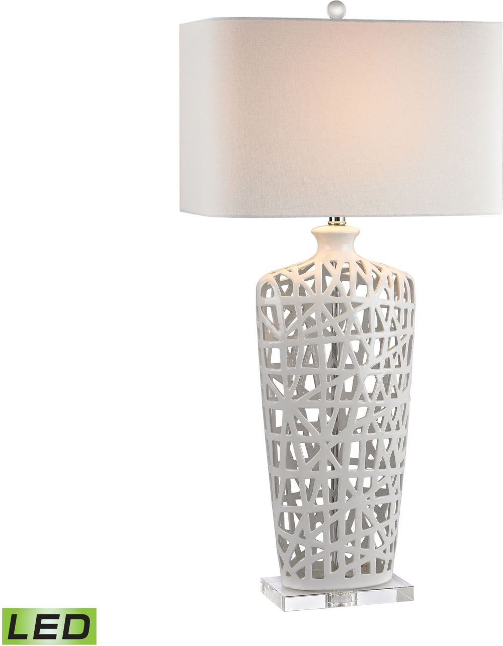 Ceramic Led Table Lamp In Gloss White and Crystal