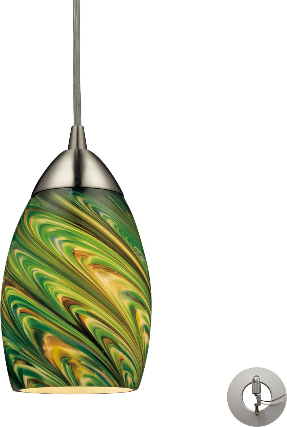 InsideAvenue Website | Mini Vortex 1 Light Pendant In Satin Nickel and Evergreen Glass - Includes Recessed Lighting Kit |