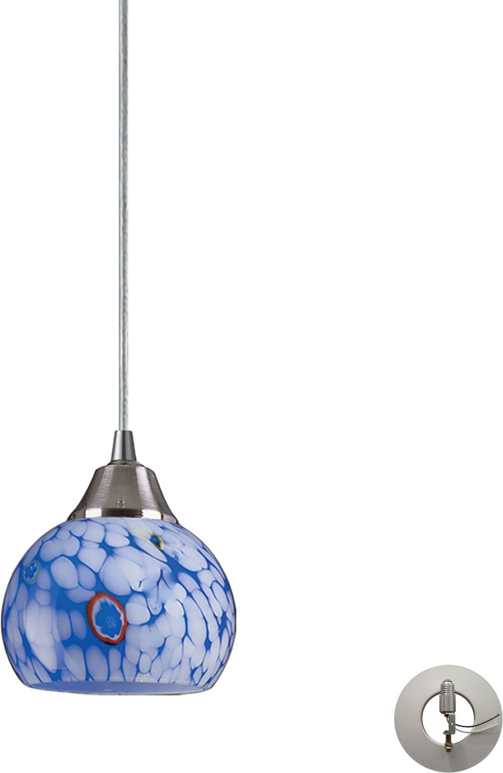 Mela 1 Light Pendant In Satin Nickel and Starburst Blue Glass - Includes Recessed Lighting Kit