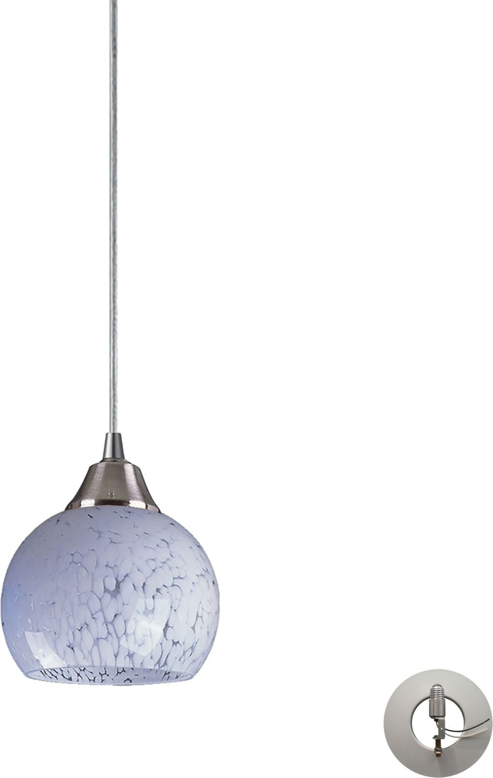Mela 1 Light Pendant In Satin Nickel and Snow White - Includes Recessed Lighting Kit