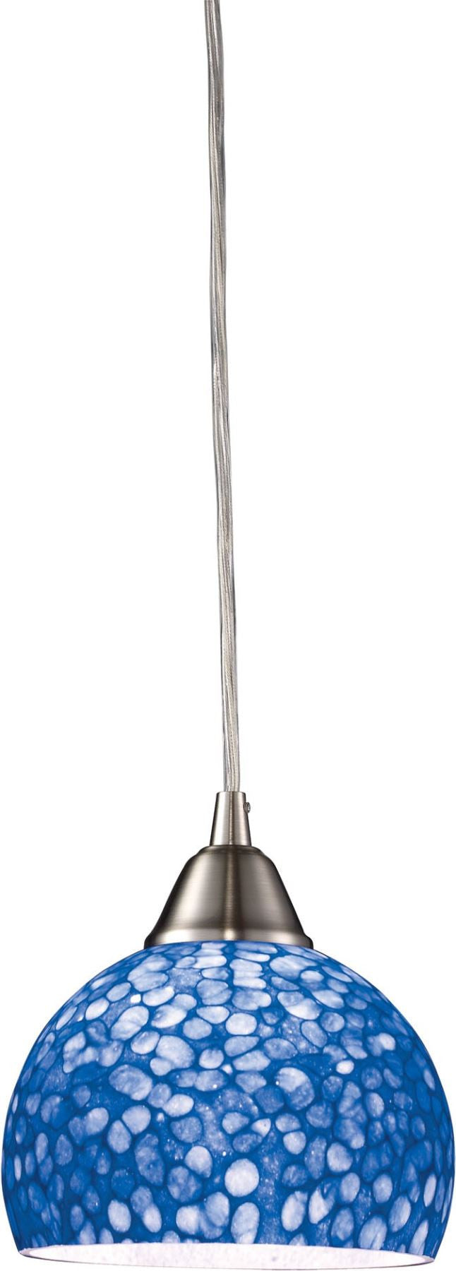 InsideAvenue Website | Cira 1 Light Pendant In Satin Nickel With Pebbled Blue Glass |
