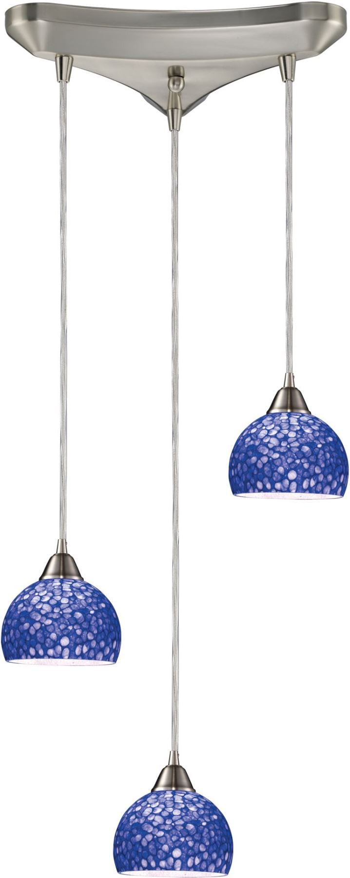 InsideAvenue Website | Cira 3 Light Pendant In Satin Nickel With Pebbled Blue Glass |