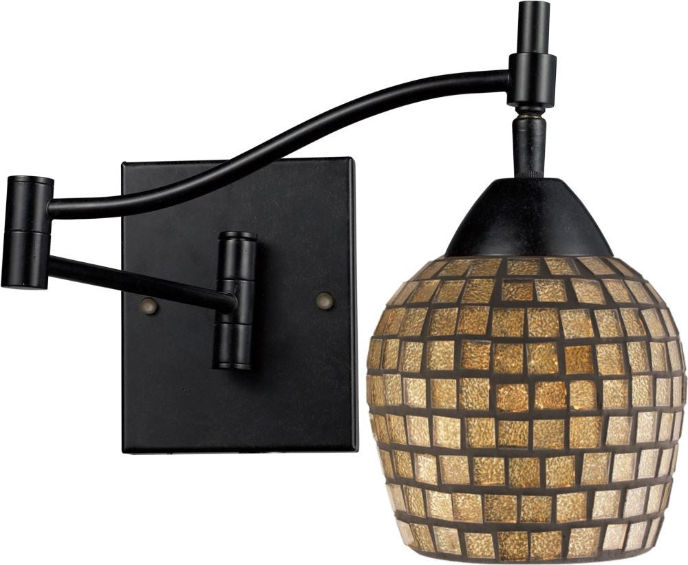 Celina 1 Light Swingarm Sconce In Dark Rust and Gold Leaf