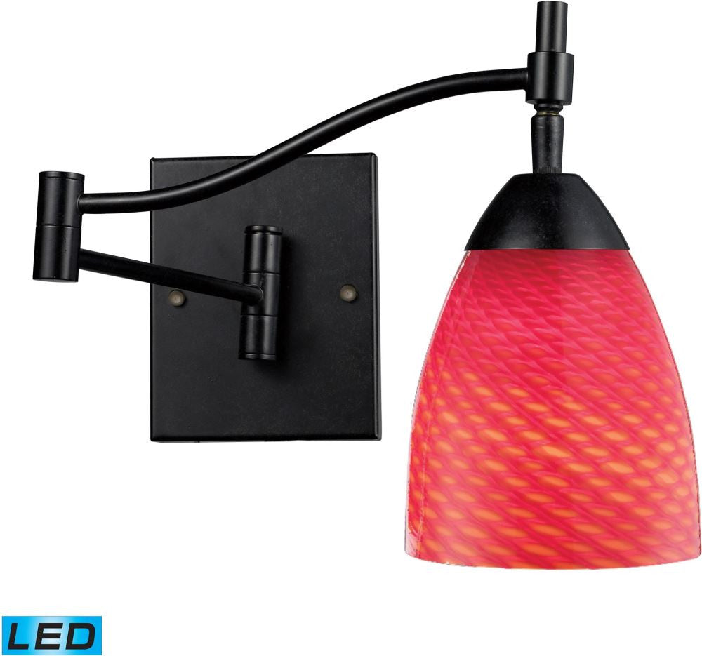 Celina 1 Light Led Swingarm In Dark Rust and Scarlet Red Glass