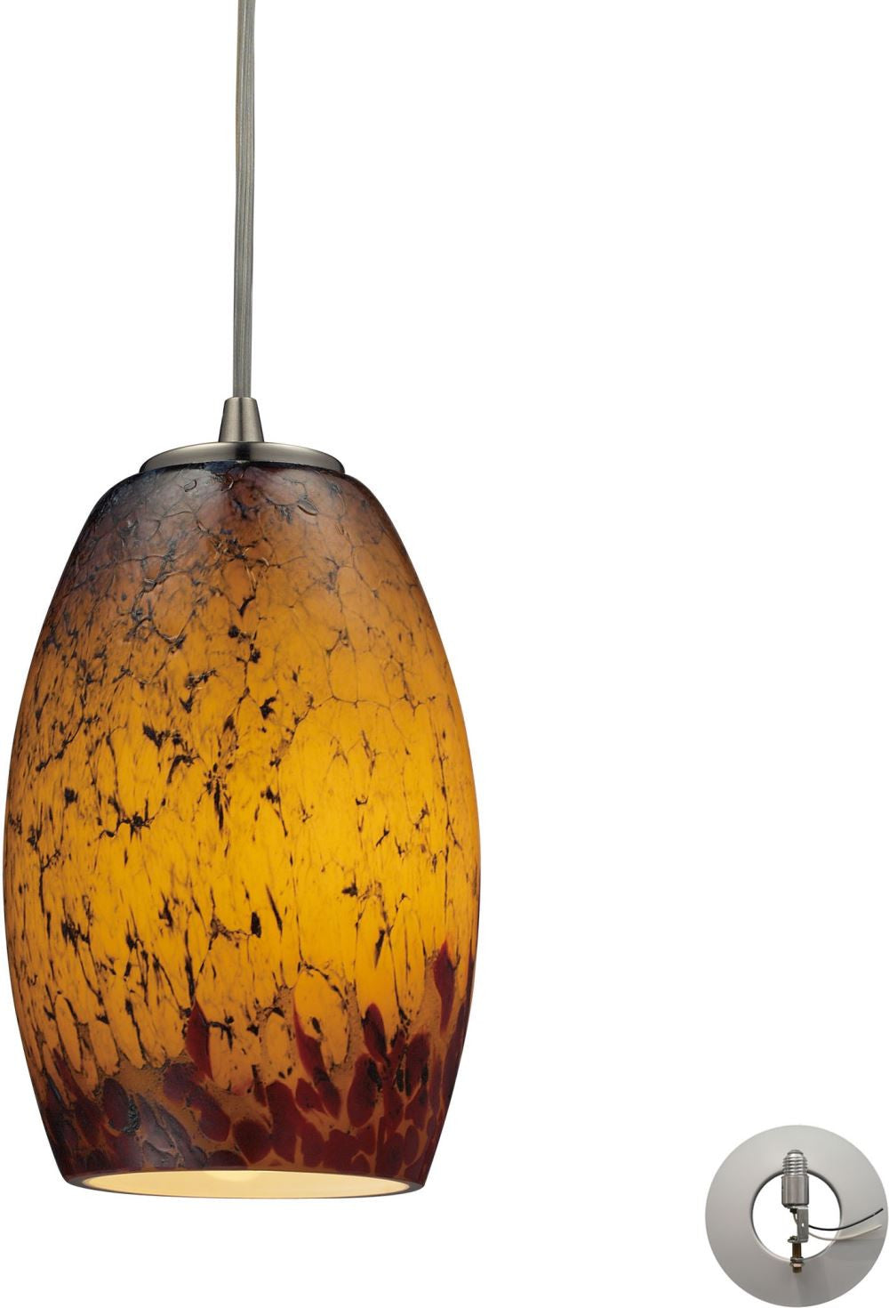 Maui 1 Light Pendant In Satin Nickel and Sunset Glass - Includes Recessed Lighting Kit