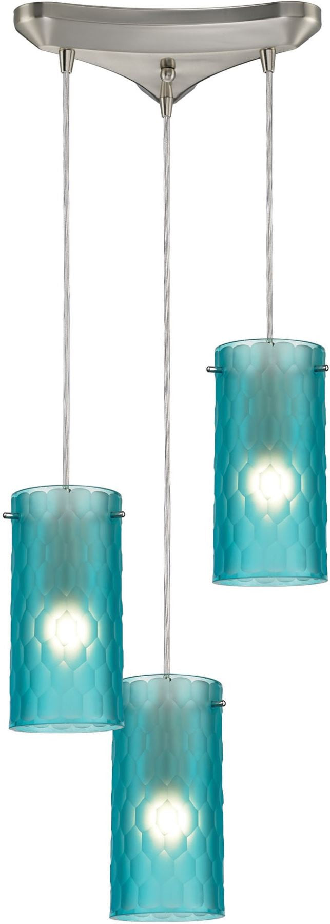 Synthesis 3 Light Pendant In Satin Nickel and Frosted Aqua Glass