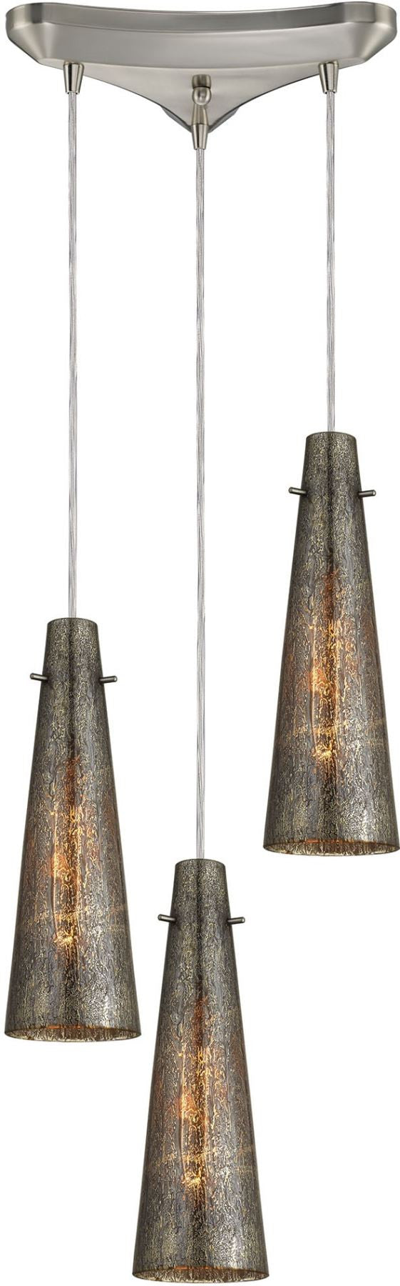 Rury 3 Light Pendant In Satin Nickel and Mercury Glass