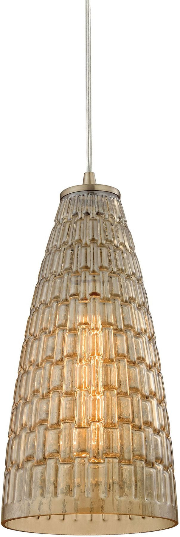 Mickley 1 Light Pendant In Satin Nickel and Amber Teak Glass