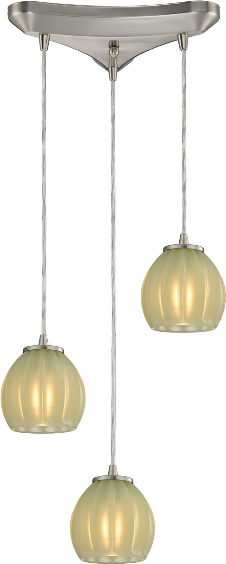 Melony 3 Light Pendant In Satin Nickel and Jade Glass