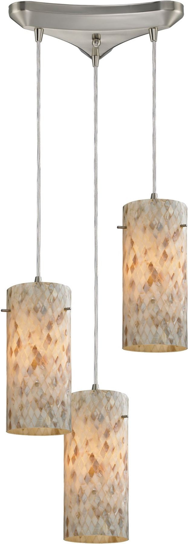 Capri 3 Light Pendant In Satin Nickel and Capiz Shell