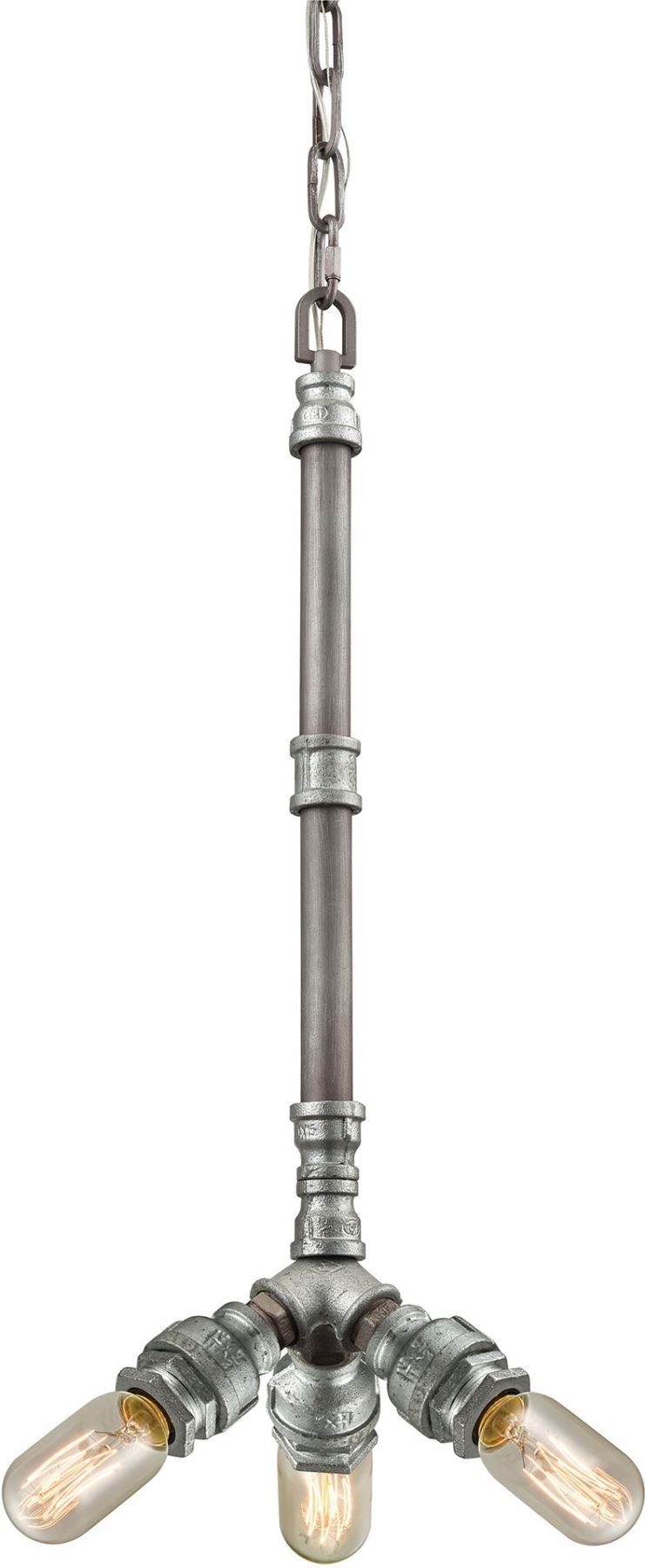 Cast Iron Pipe 3 Light Chandelier In Weathered Zinc