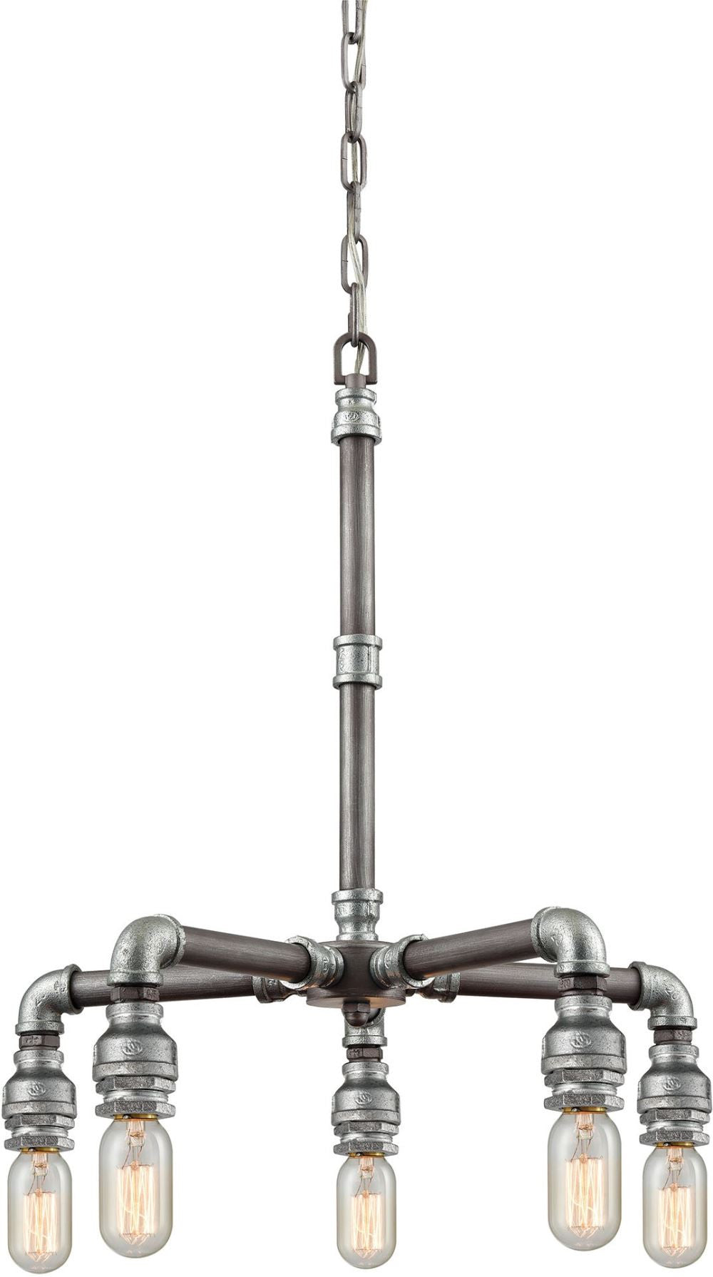 Cast Iron Pipe 5 Light Chandelier In Weathered Zinc