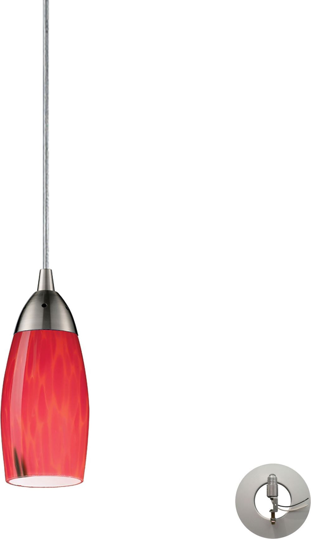 Milan 1 Light Pendant In Satin Nickel and Fire Red Glass - Includes Recessed Lighting Kit