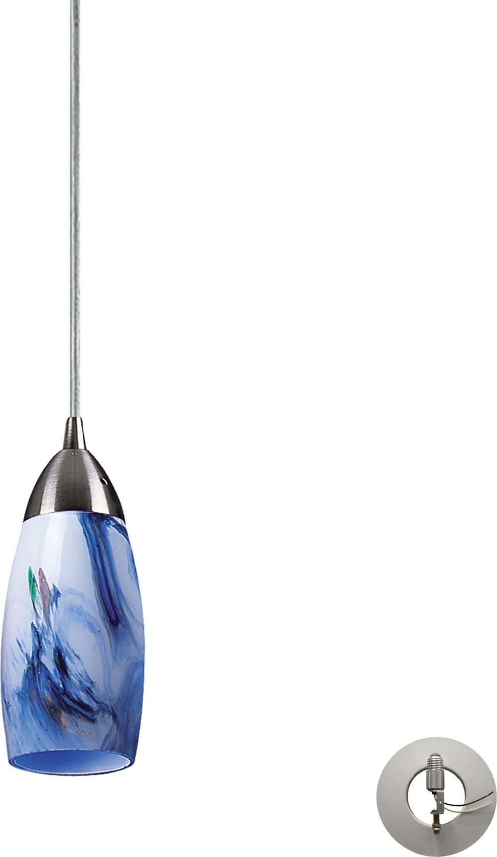Milan 1 Light Pendant In Satin Nickel and Mountain Glass - Includes Recessed Lighting Kit