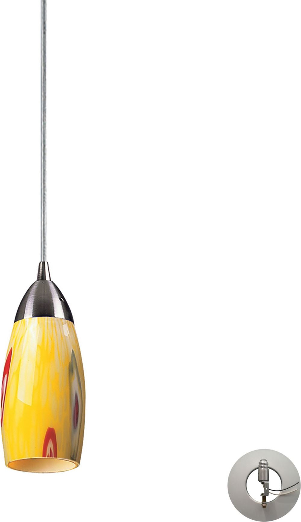 Milan 1 Light Pendant In Satin Nickel and Yellow Blaze Glass - Includes Recessed Lighting Kit