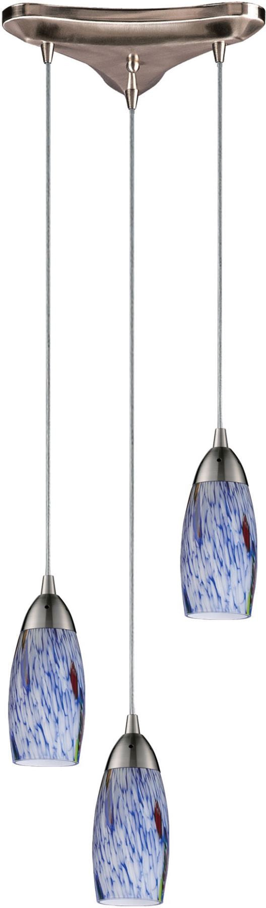 InsideAvenue Website | Milan 3 Light Pendant In Satin Nickel and Starburst Blue Glass |