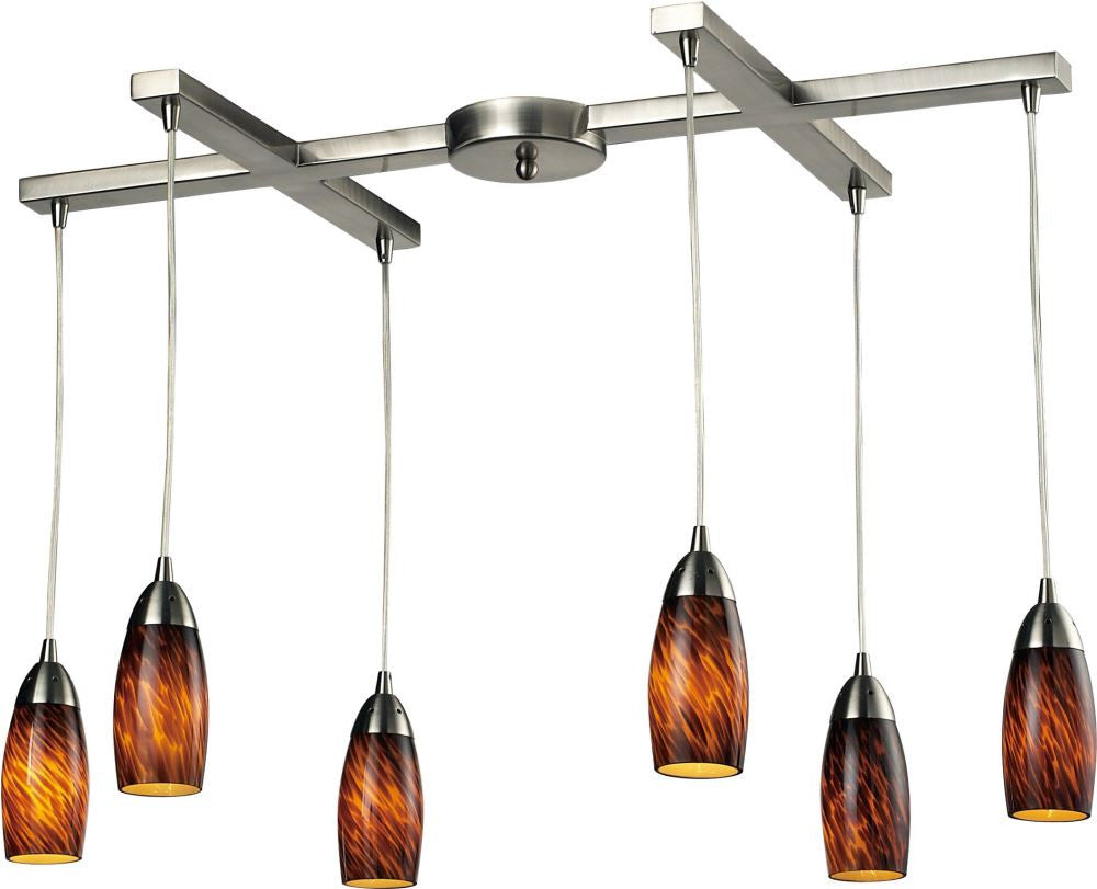 Milan 6 Light Pendant In Satin Nickel and Espresso Glass