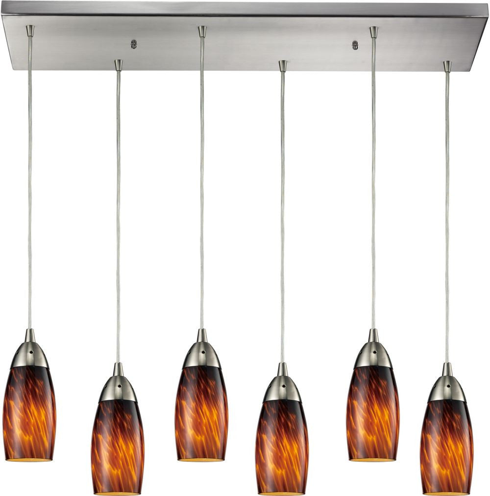 Milan 6 Light Pendant In Satin Nickel and Espresso Glass