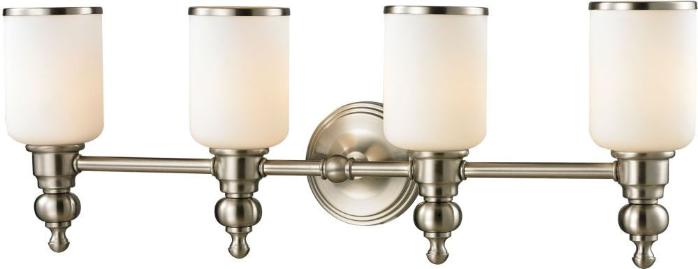 Bristol Way 4 Light Vanity In Brushed Nickel and Opal White Glass
