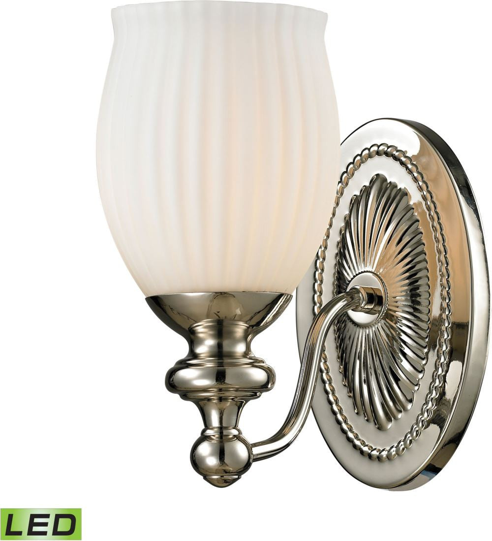 Park Ridge 1 Light Led Vanity In Polished Nickel and Reeded Glass