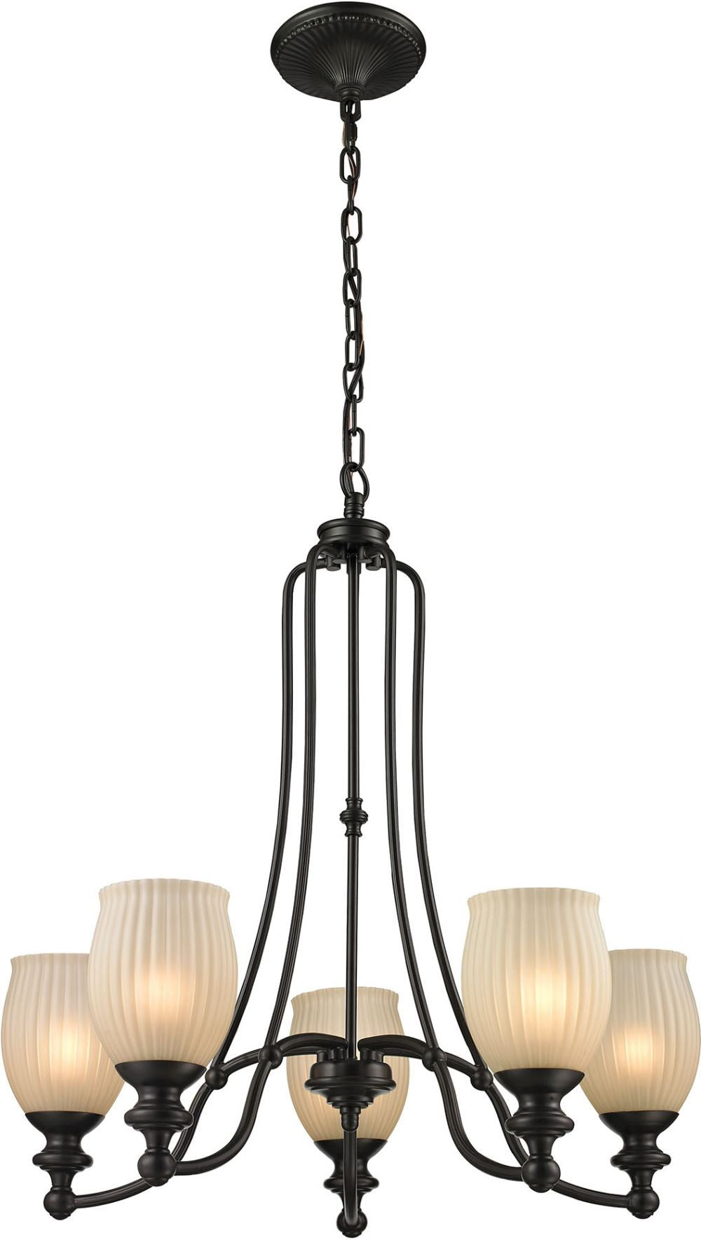 Park Ridge 5 Light Chandelier In Oil Rubbed Bronze and Reeded Glass